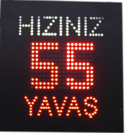 Trafik kaza veri tabanımızdan elde edilen veriler ışığında, aşırı hız kaynaklı kazaların sıklıkla yaşandığı trafik noktalarında araç hızlarının tespit ederek sürücülerimizi belirlenen hız limitlerine uymalarını sağlamak için elektronik azami hız uyarı sistemleri kurmaktayız. Sistemde radar cihazları kullanılarak şerit bazlı hız tespiti yapılmakta, ölçümlenen hız verisi limitin altında ya da üstünde olması durumlarına göre değerlendirilip LED panelde uygun mesaj gösterilmektedir.