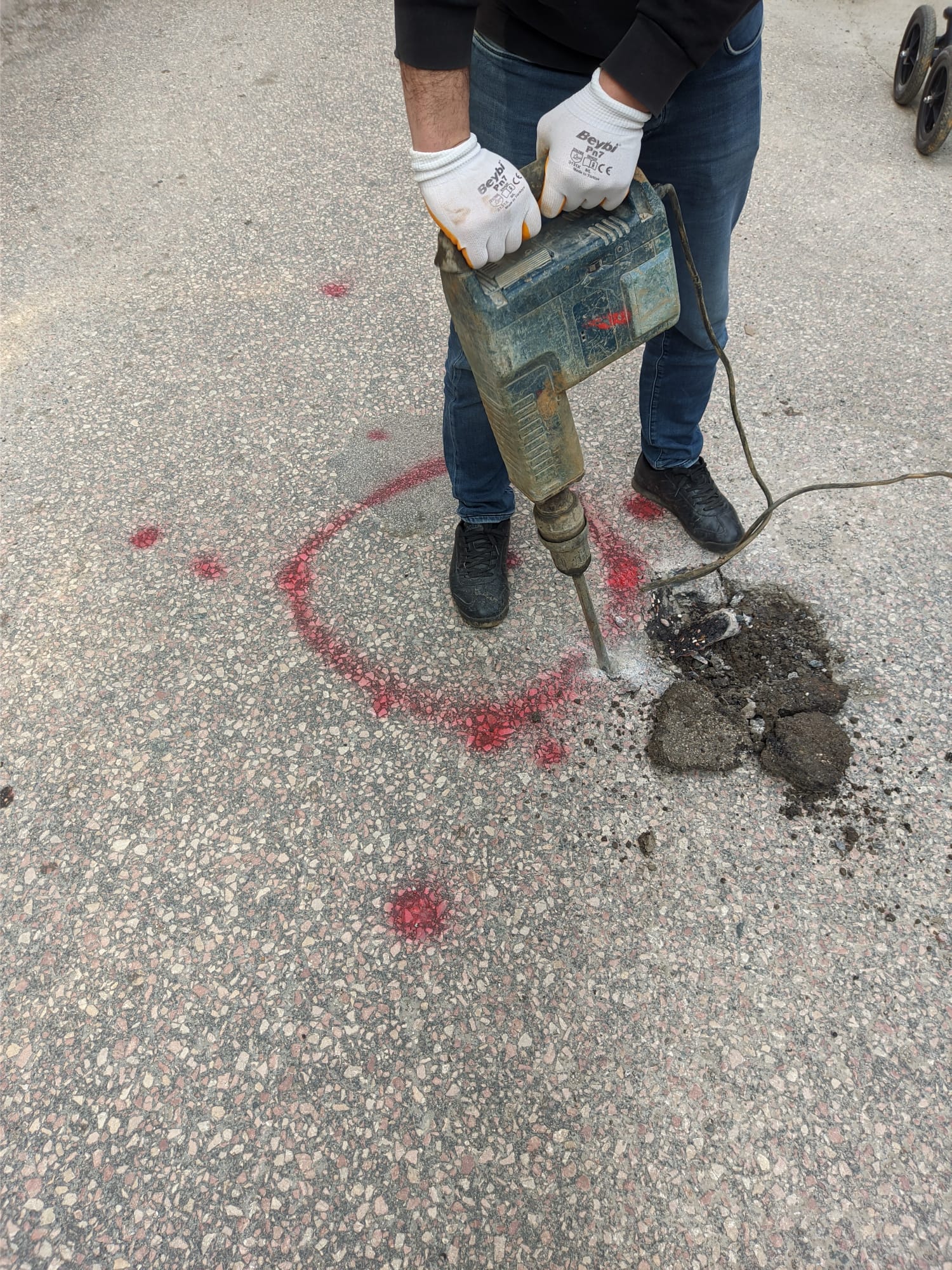 İşaretlenen bölgedeki lokal kazı işlemi ile diğer teknik altyapı elemanlarına zarar vermeden çözüm sunulmuştur.