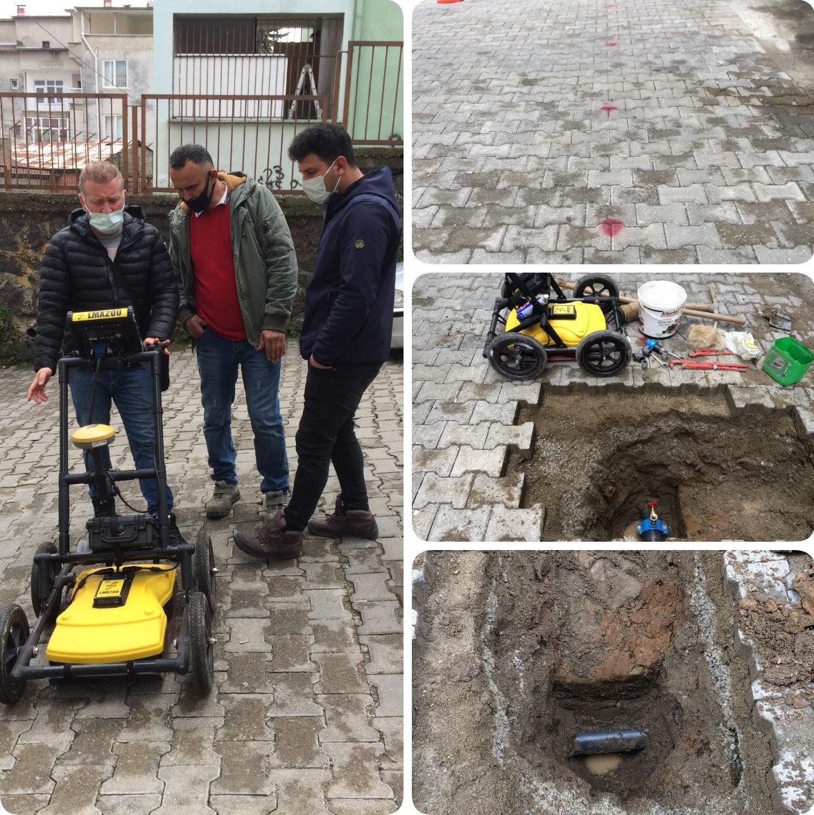 Jeoradar cihazı ile tespiti yapılan borular derinlik ve çapları ile birlikte Cors cihazıyla ölçülerek kayıt altına alınmıştır. Bu ölçümler ile şehir altyapı haritasının oluşturulması için hassas veriler elde edilebilmektedir.